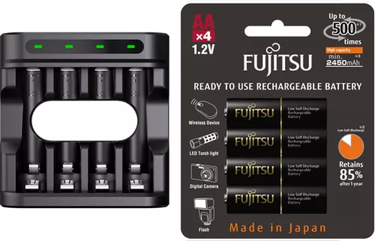 Carregador com 4 Pilhas AA Recarregáveis da Fujitsu 2550 Mah (EPILHAS)