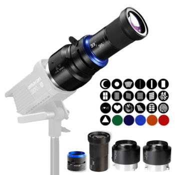 Snoot optico Miaotu modelo MG06 Pro com lente 33/36° (Bowens) + 19 Molduras Gráficas + 5 gelatinas coloridas